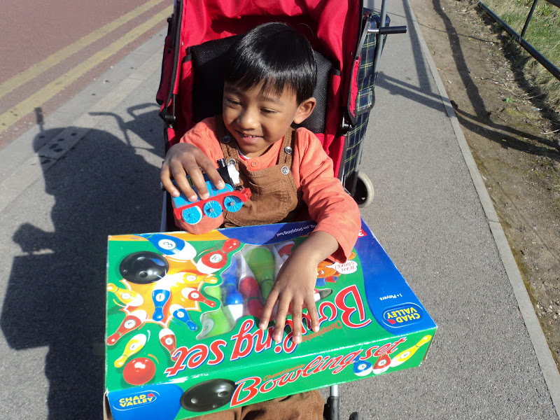 Aqil la yg paling relax, duduk je dlm stroller pehtu tunjuk nak toys itu ini.. huhu.. Syok sungguh dpt Thomas train & bowling set ni:)